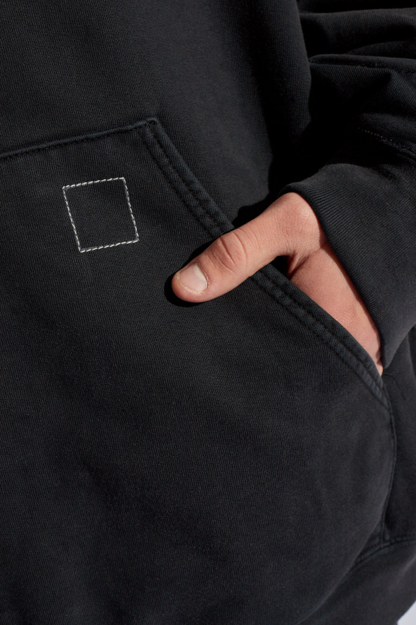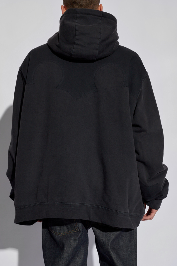 Black hoodie from Maison Margiela. Fastened with a zip, this design features stitches, a drawstring hood, two slip pockets and ribbed trims at the hem and cuffs.