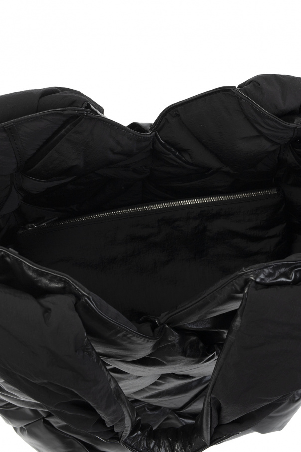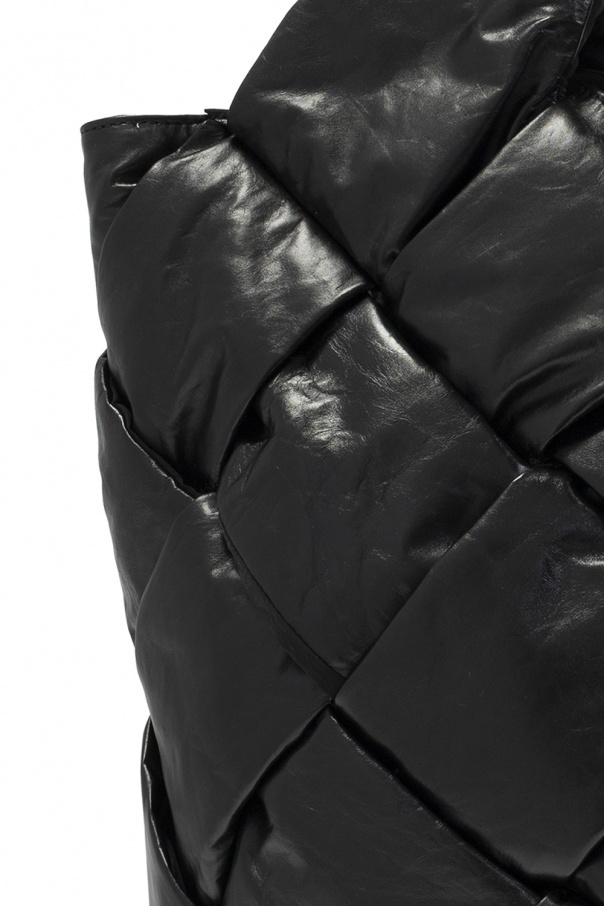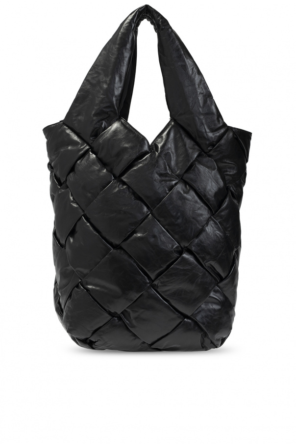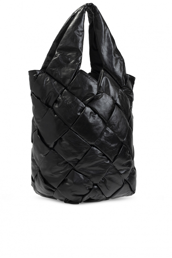 Black ‘Cassette’ quilted shopper bag from Bottega Veneta. Made of calf leather, this model is complete with two half-round handles, silver-tone metal hardware and one internal compartment with one zip pocket.