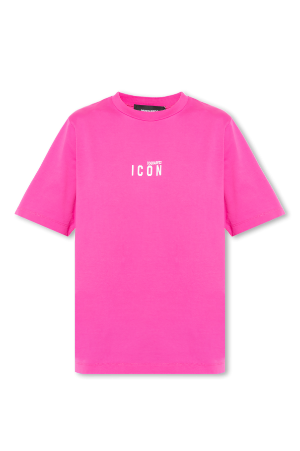 Pink crewneck T-shirt from Dsquared2. Made of cotton, this style features a white graphic print with the brand\'s logo on the front, short sleeves and ribbing on the collar.