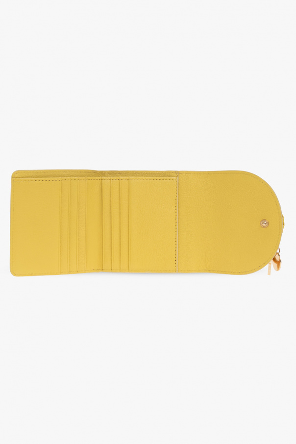 Yellow ‘Hana’ bifold wallet from See By Chloé. Made of leather, this item features a snap closure, round appliqué with decorative trimming, charm, embossed logo, zipped coin pocket at the back, gold-tone metal hardware and one internal bill compartment with eight card slits.