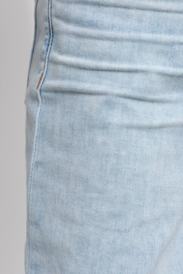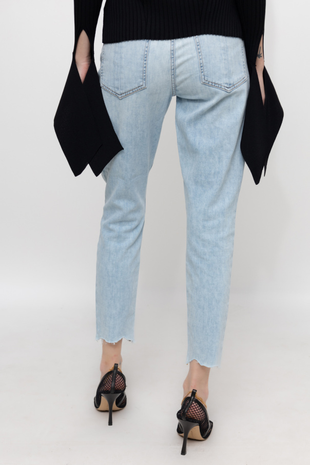 Light blue ‘Kate’ skinny jeans from Rag & Bone. Enriched by a vintage effect, this pair features a zip fly with a button, classic five pockets, white logo embroidery at the back, and raw hems.