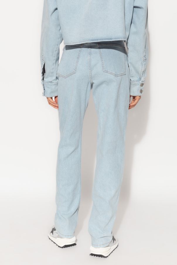 Introducing the Deniagz Jeans from the exclusive Gestuz collection, a testament to classic style with a modern twist. Crafted from premium, medium-weight, light blue denim, these jeans exhibit a soft, slightly faded appearance, indicative of the sophisticated stonewash technique employed. The straight, classic cut is complemented by a regular waist and subtly tapered legs, ensuring an impeccable fit that flatters with ease. The distinctiveness of the Deniagz Jeans lies in their meticulous details. The iconic \"BG\" logo, discreetly placed on the back pocket, adds a touch of exclusivity, while the contrast stitching in vibrant orange thread provides a striking visual accent. Equipped with a traditional zip fly and button closure, and featuring the quintessential five-pocket design, these jeans blend functionality with high-end fashion. Why Purchase These Jeans? Exclusive Design: The subtle \"BG\" logo signifies the designer\'s mark of quality and exclusivity. Superior Craftsmanship: Made from 100% cotton, these jeans offer both comfort and durability. Attention to Detail: The contrast stitching and classic five-pocket design underscore the jeans\' premium construction. Versatile Styling: The light blue hue and casual aesthetic make them suitable for a variety of outfits and occasions.