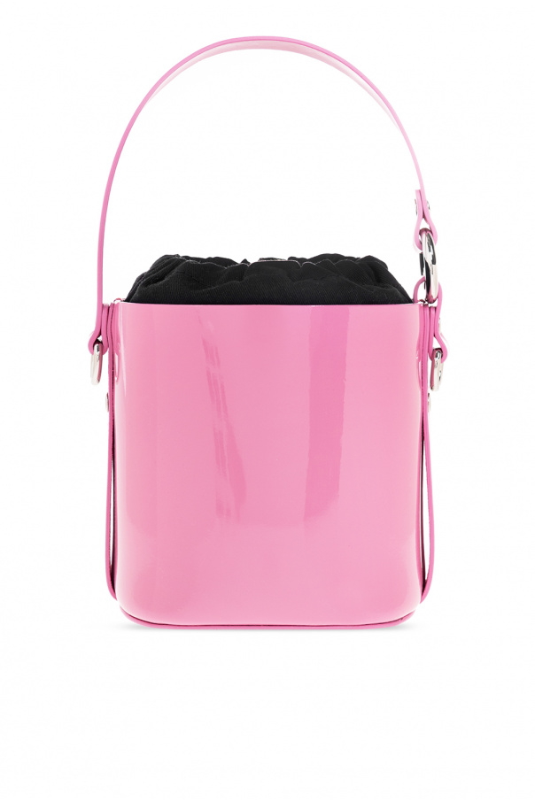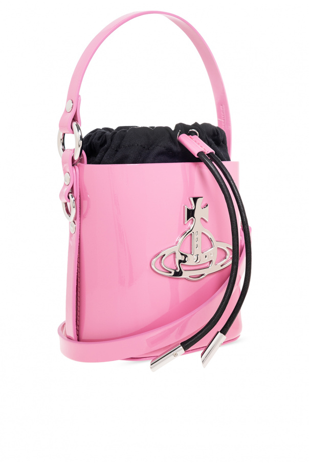 Pink ‘Daisy Small’ shoulder bag from Vivienne Westwood. Crafted from patent calf leather, this model features drawstring fastenings, a metal logo appliqué, half-round handle, detachable and adjustable shoulder strap, one internal compartment and silver-tone metal hardware.