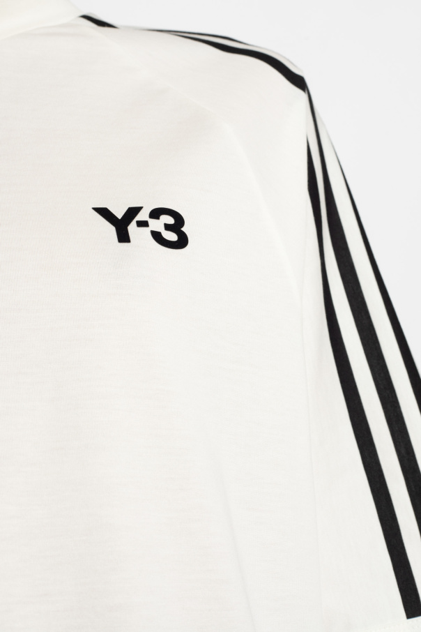 Cream crewneck T-shirt from Y-3 Yohji Yamamoto. Crafted from organic cotton with a relaxed fit, this style showcases the brand\'s logo, signature black three stripes and short sleeves.