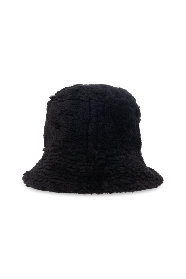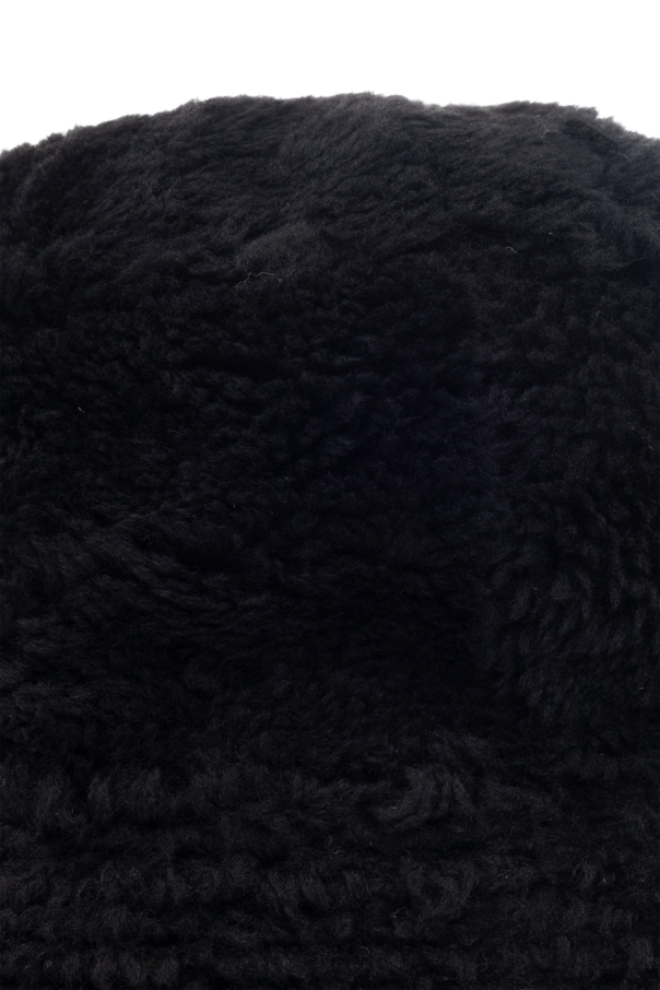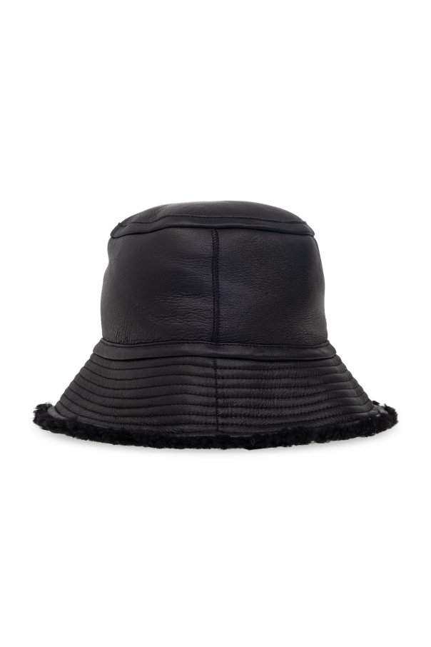 Black, reversible bucket hat from Yves Salomon. Made of lamb leather and fur.