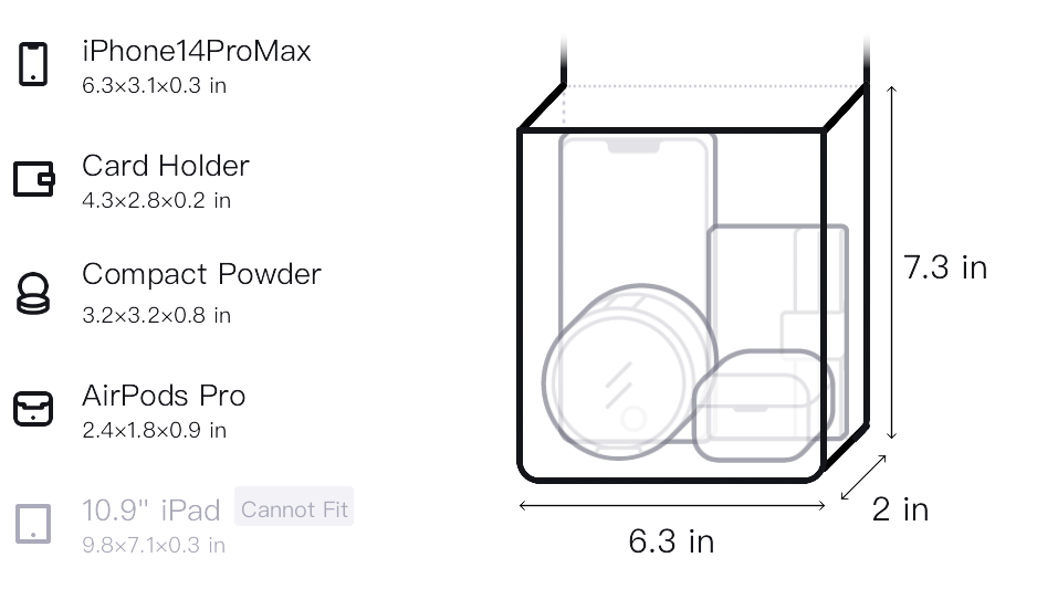 - Size:L*W*H: 6.3*2.0*7.3 in