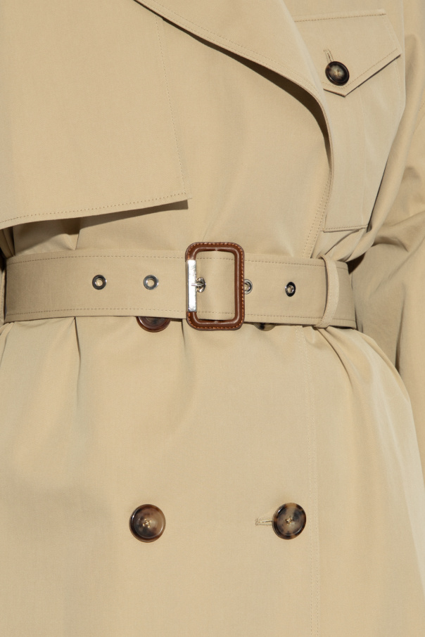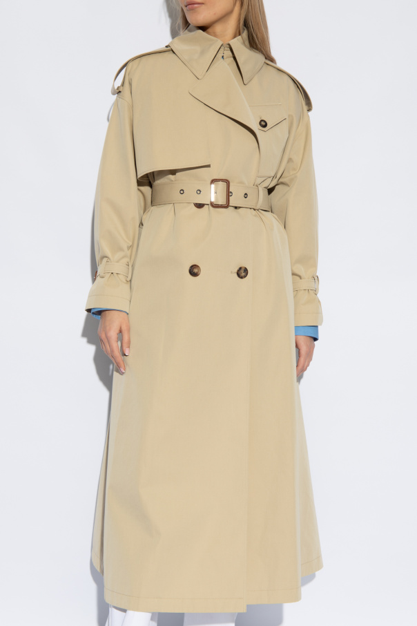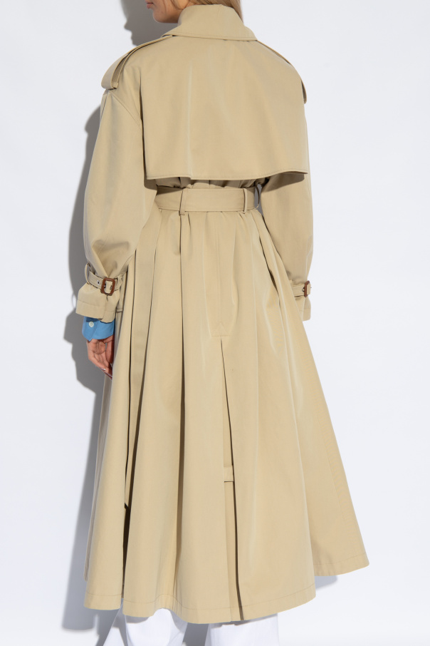Green double-breasted trench coat from Alexander McQueen. Fastened with buttons, this design features two front pockets, waist belt and epaulettes.