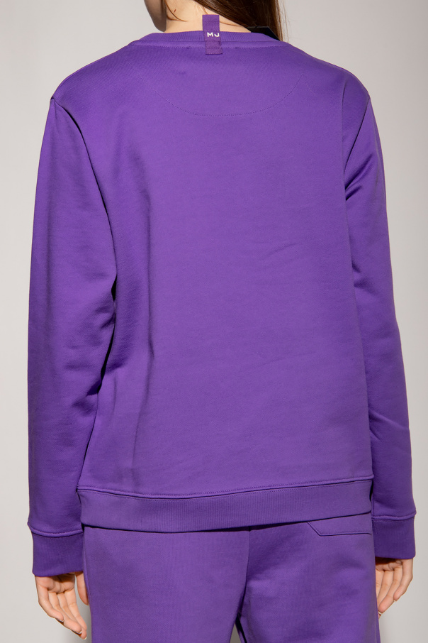 Purple crewneck sweatshirt from Marc Jacobs. Made of cotton jersey, this style features light purple logo embroidery and ribbed trims on the collar, bottom hem and cuffs.