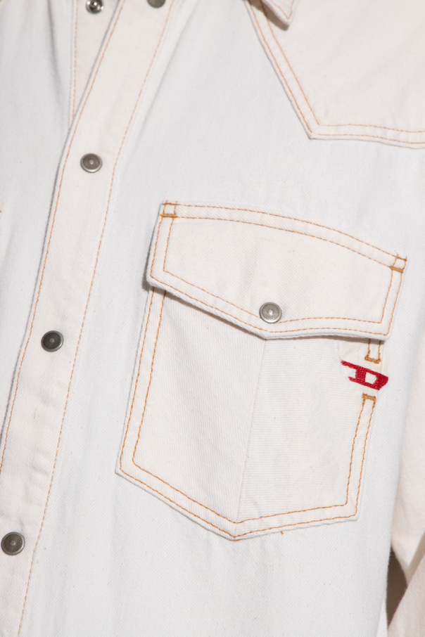 Cream ‘D-OCEAN’ shirt from Diesel. Made of cotton, this garment features snap fastenings, two flap pockets, decorative stitching and long sleeves with snap-fastened cuffs.