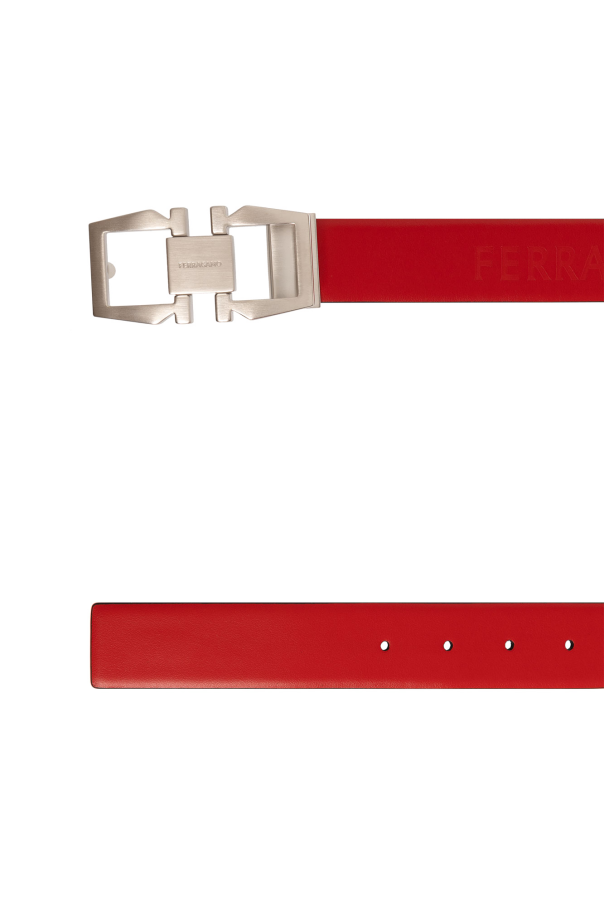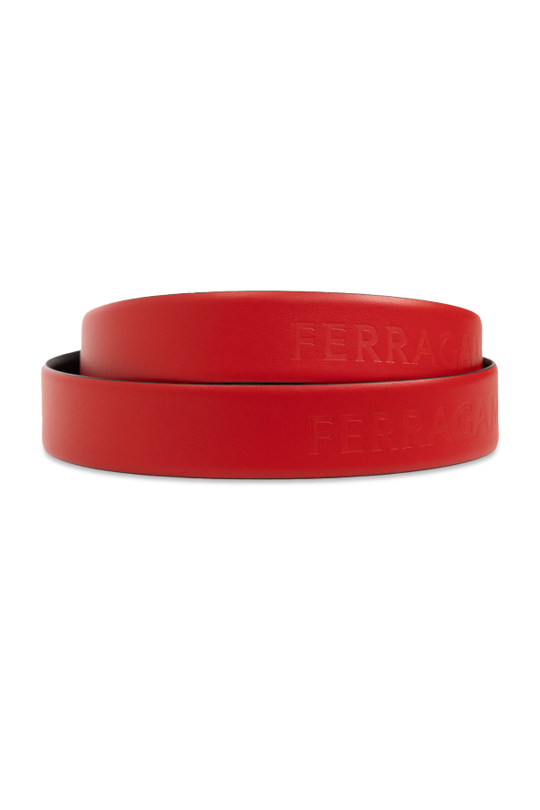 Reversible belt in black and red from FERRAGAMO. Made of smooth leather, this item showcases an embossed logo and a silver-tone metal buckle in the shape of a logo.
