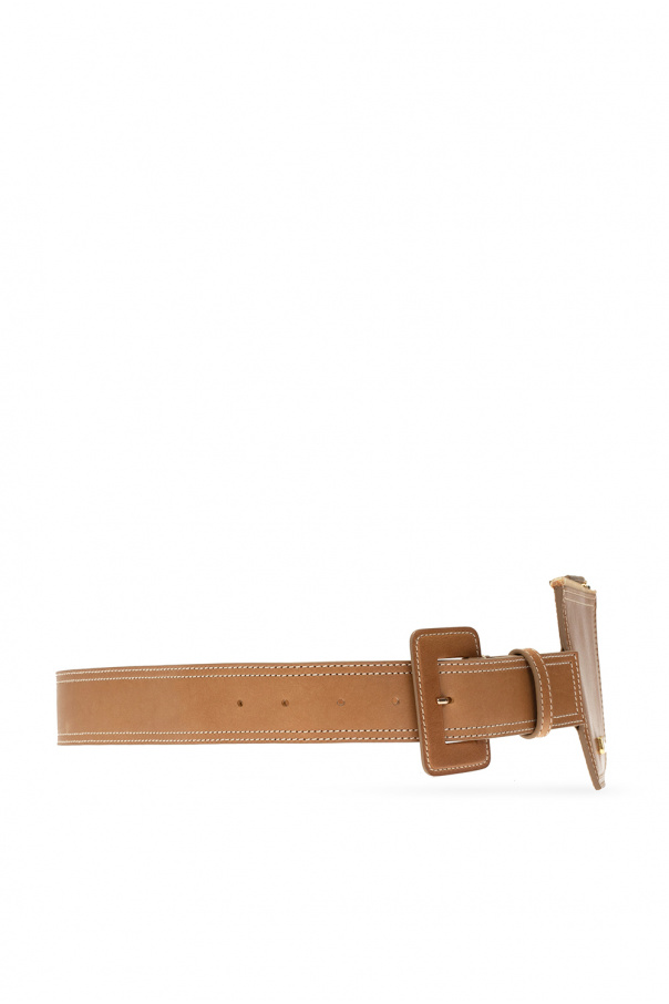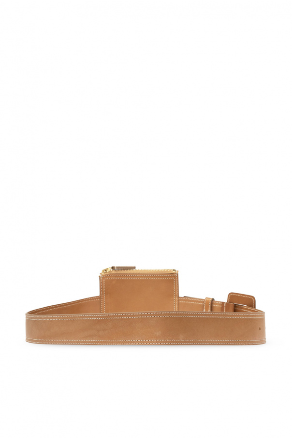 Brown ‘La Ceinture Carree’ belt pouch from Jacquemus. Crafted from leather, this design fastens via a zip and features a gold-tone metal logo plaque on the front, an adjustable strap and one internal compartment.