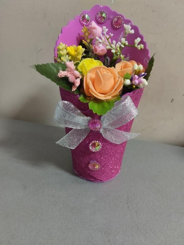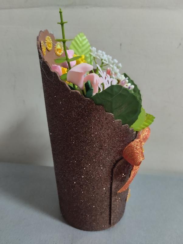 Выполнен из фоамирана и искусственных цветов, высота 17см, диаметр низ- 5,5см, верх-10см. Прекрасный подарок для дома. Скоро женский праздник , порадуйте своих дам колоритным подарком.