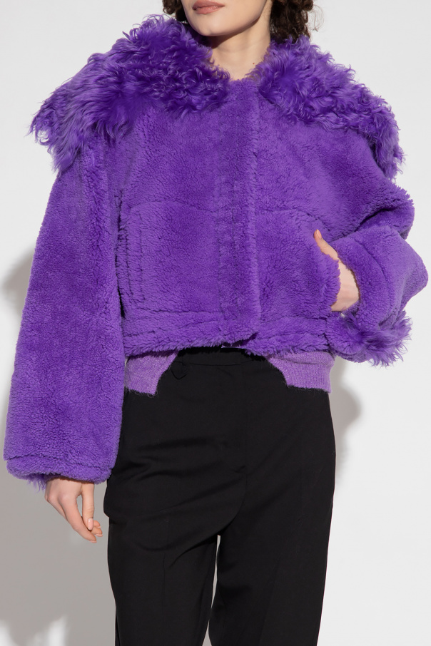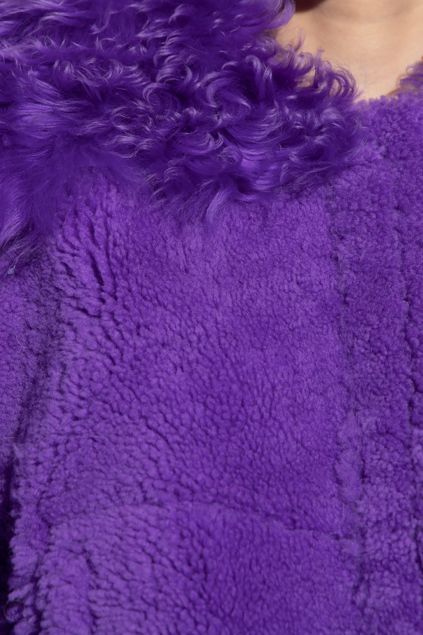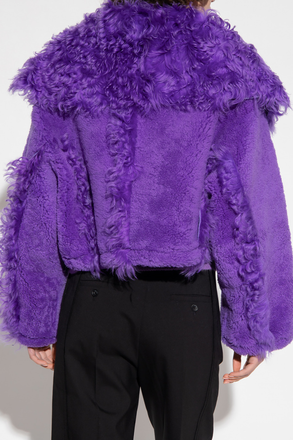 Purple ‘Piloni’ shearling jacket from Jacquemus. Fastened with a zip, this long sleeve design is complete with two slip pockets.