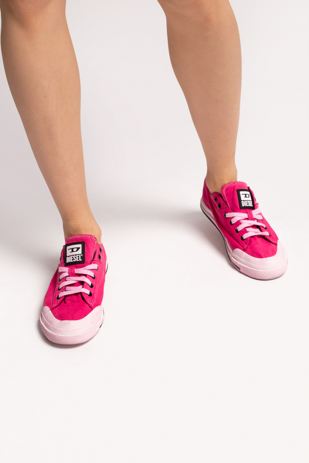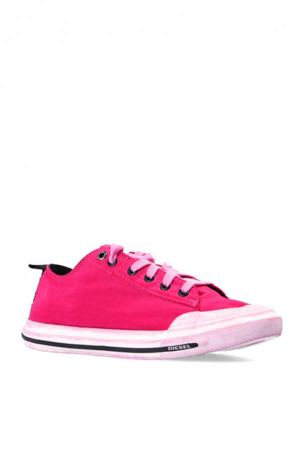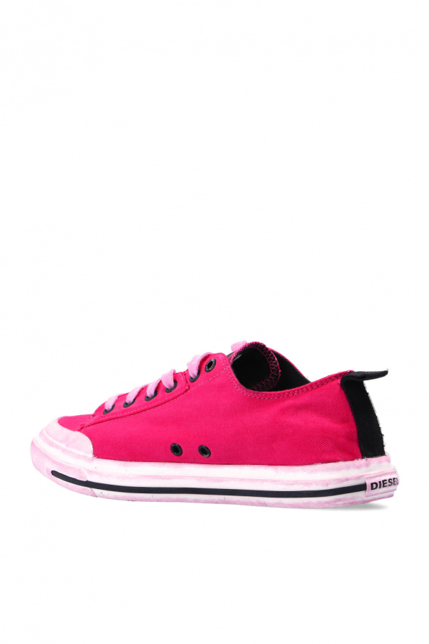 Dark pink ‘S-Astico Low’ sneakers from Diesel. Enriched by a rubberised logo appliqué on the tongue, this lace-up pair sits on a light pink rubber sole.