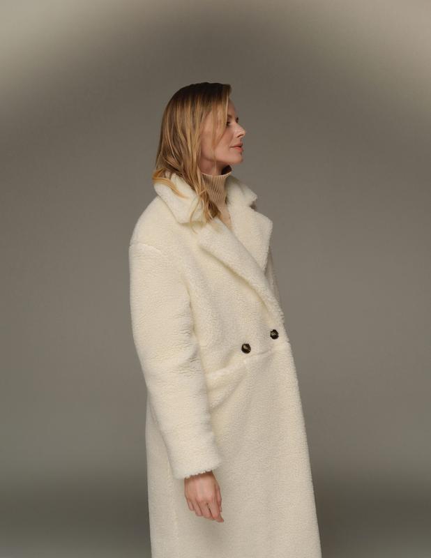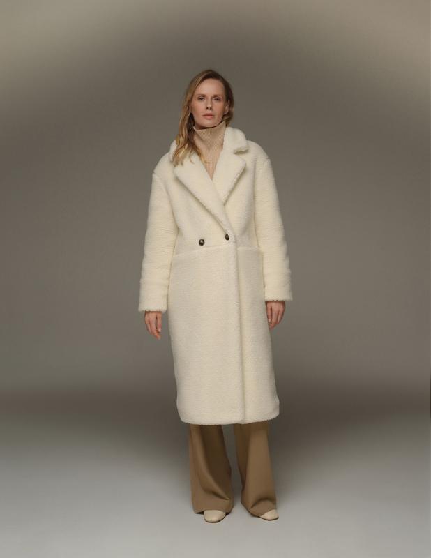 Шуба з еко-хутра прямого силуету українського бренду MONRO. З утеплювачем Slimtex на температурний режим до -25 °. Застібається на ґудзики. Додатково є потайні ґудзики та петлі, щоб можна було застібнути повністю ворот та додатково застібнути борти нижче до коліна. Є дві зовнішні кишені в швах і одна внутрішня.