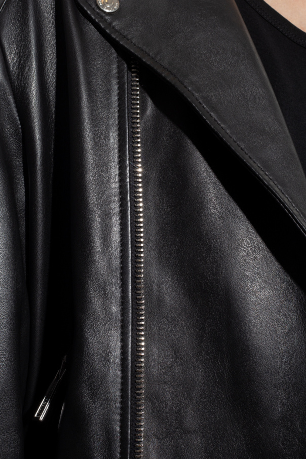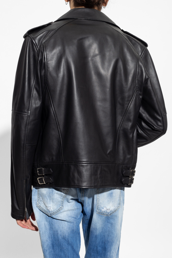 Black jacket from Dsquared2. Crafted from leather, this model features a zip fastening, notch lapels, three zip pockets and long sleeves.