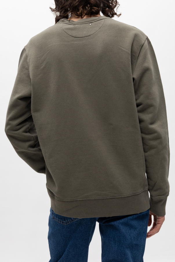 Greyish green crewneck sweatshirt from Golden Goose. Crafted from cotton jersey, this style features a logo pattern and ribbed trims on the collar, bottom hem and cuffs.