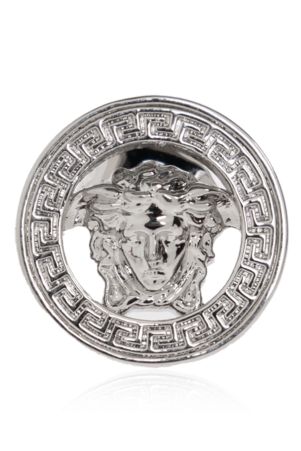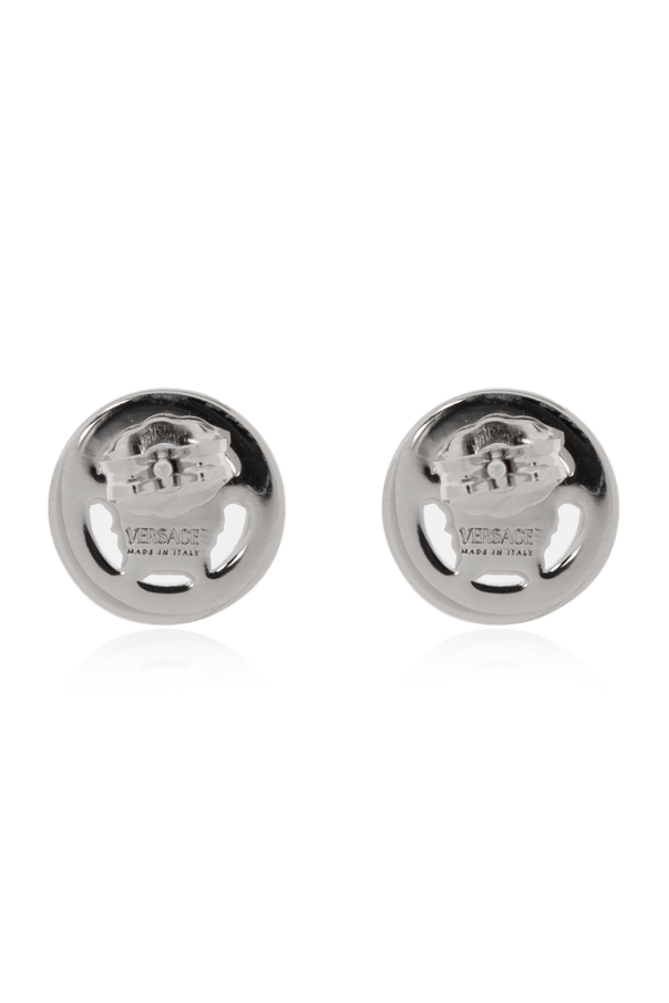 Introducing the Medusa Head Earrings from the distinguished fashion house of Versace, a paragon of luxury and sophistication. These earrings are meticulously crafted in a striking silver tone, embodying the perfect blend of classic elegance and modern flair. Each earring features a round silhouette adorned with the iconic Medusa head at its center, surrounded by the timeless Greek meander pattern, a hallmark of Versace\'s illustrious design heritage. The earrings are fashioned from premium metal, ensuring a lustrous sheen that complements the refined aesthetics of the design. On the reverse side, a carefully engraved Versace logo and \"Made in Italy\" inscription affirm the authenticity and superior craftsmanship of this exquisite piece. Designed as men\'s jewelry, these earrings boast bold, defined lines that emphasize a strong and classic look. Why Choose This Product? Iconic design featuring the Medusa head and Greek meander for a timeless appeal. High-quality silver-tone metal offers an elegant and durable finish. Authenticity guaranteed with engraved brand logo and origin statement. Secure stud closure for ease and comfort.