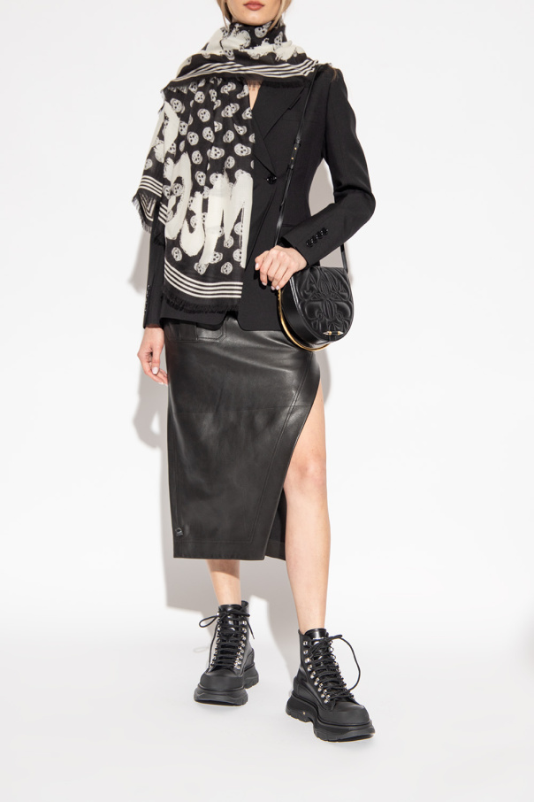 Black platform boots from Alexander McQueen. Made of leather and rubber, this lace-up pair features a raised logo detail on the side and black rubber sole.