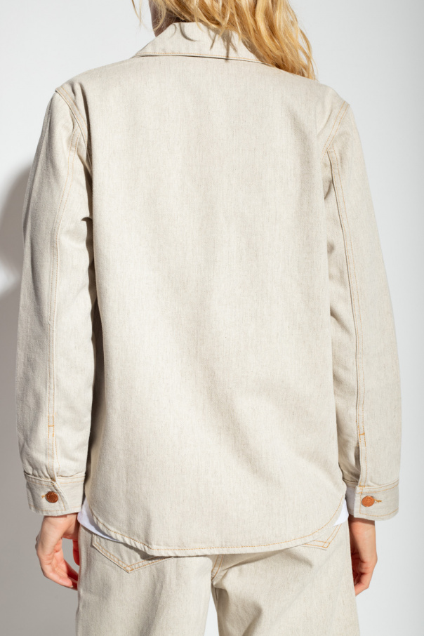 Grey ‘Rositta’ denim jacket from Samsoe Samsoe. Crafted from a blend of organic cotton and hemp, this style features button fastenings, three slip pockets and long sleeves with button cuffs.