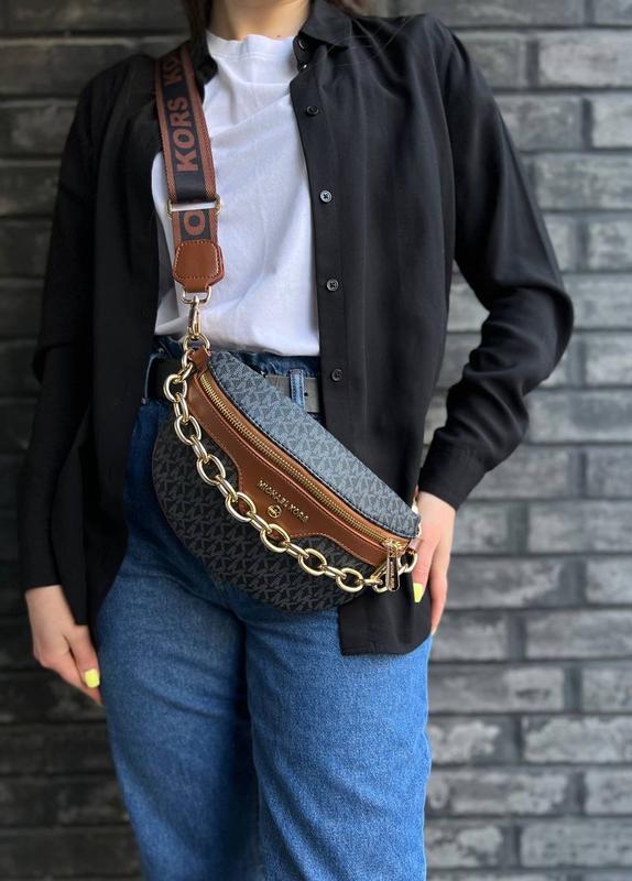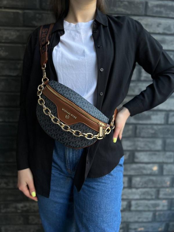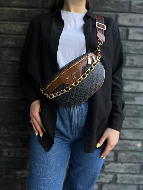 ☺️Бананка с декоративной цепочкой и фирменным тиснением. Одно отделение с дополнительным карманом на молнии. В комплекте текстильный ремень, крепящийся на карабины