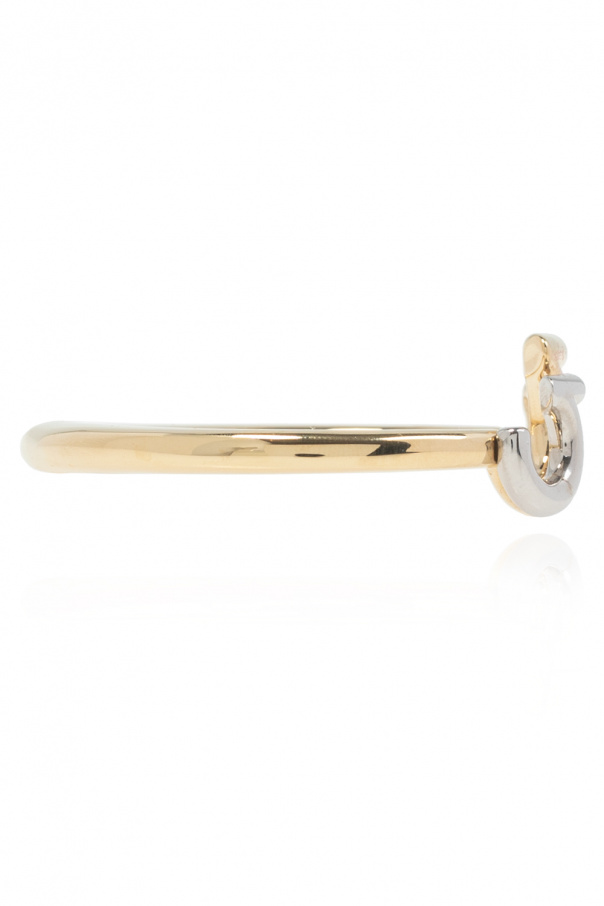 Gold-tone bracelet from Salvatore Ferragamo. Made in brass, this item showcases the signature ‘Gancini’ appliqué.