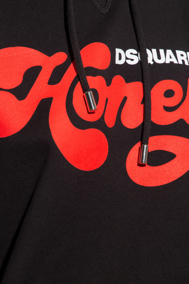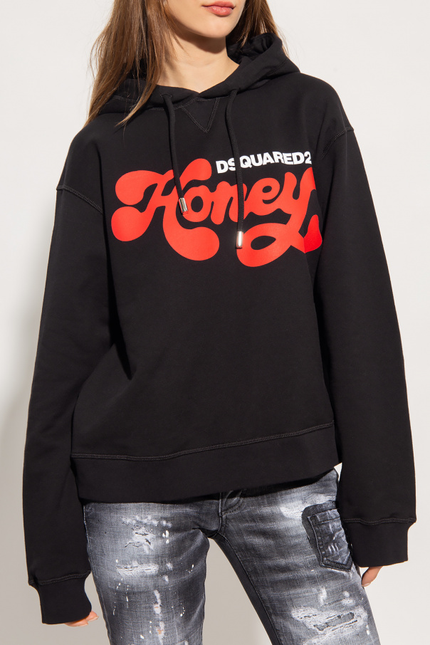 Black hoodie from Dsquared2. Made of cotton, this long sleeve design features a red and black Honey logo, drawstring hood and ribbed trims at the hem and cuffs.