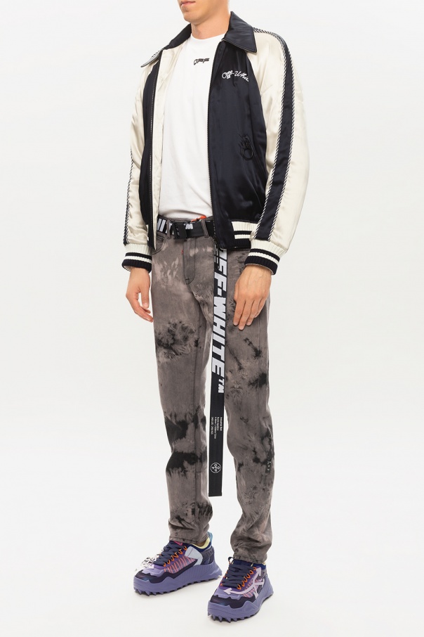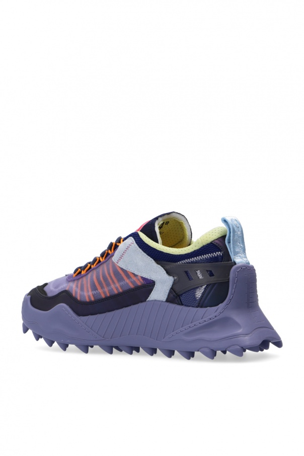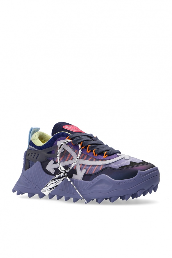 Multicoloured \'Odsy-1000\' sneakers from Off-White. Set on a distinctive, sculpted purple rubber sole, this lace-up model has leather overlays, a light violet logo detail on the side and a distinctive pink appliqué.