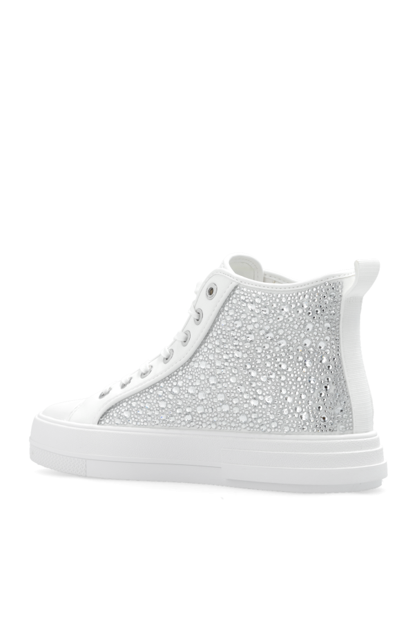 White ‘Evy’ sneakers from Michael Michael Kors. Made of fabric, this lace-up pair features crystals and a branded sole in white rubber.