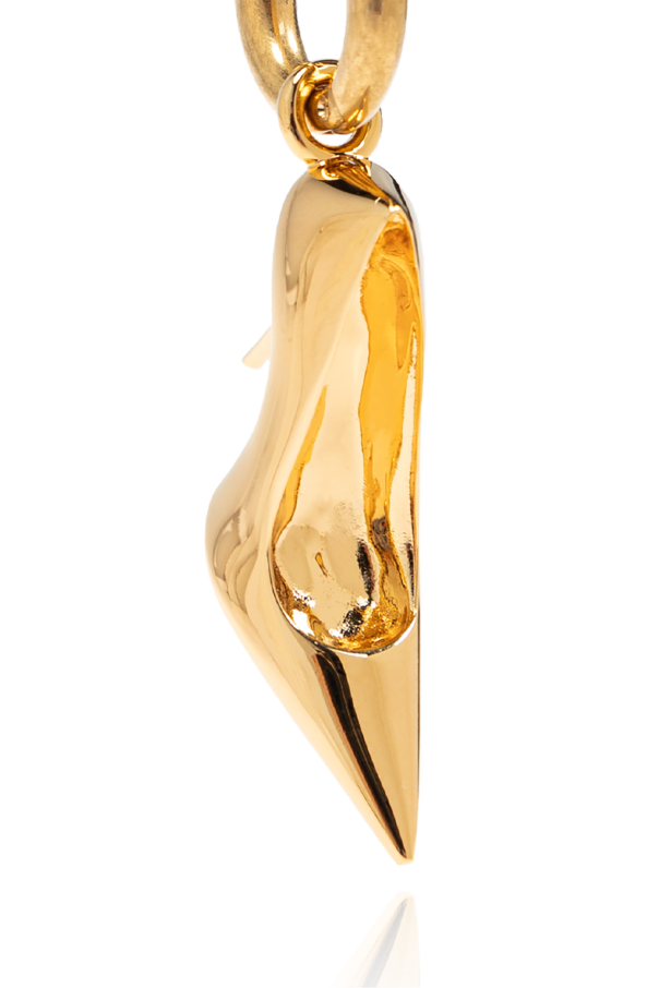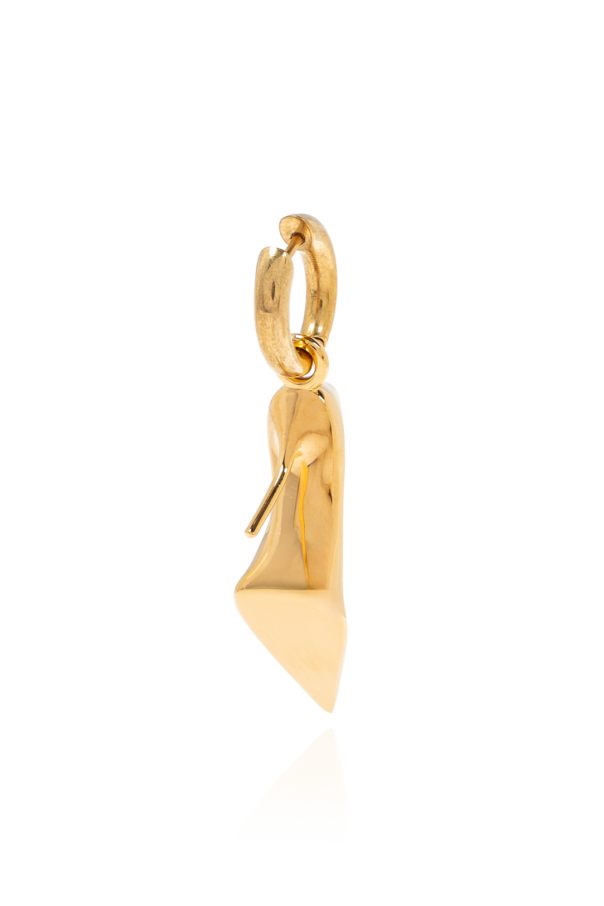Discover the epitome of avant-garde elegance with the Brass Earring by Balenciaga. This masterpiece, meticulously crafted from the finest 100% brass, boasts a gleaming golden hue that captures and reflects light, creating an aura of sophistication and luxury. The earring\'s unique, sculpted shape, reminiscent of abstract forms or flowing metal, is polished to perfection, offering a smooth, lustrous finish that is simply captivating. The design\'s asymmetrical aspect imparts a dynamic and modern flair, ensuring that each piece stands out with its slight variances, adding a layer of uniqueness. Suspended from a simple, yet elegant gold hook, this earring is not only a testament to Balenciaga\'s commitment to originality but also to its subtle nod towards industrial-inspired shapes, exploring innovation within high-fashion collections. Consciously devoid of any markings or logos, the focus remains solely on its form and material, making it a sterling addition to any discerning wardrobe. When worn, it assumes a medium size, striking the perfect balance between visibility and understatement, thus enhancing refined ensembles with an air of cultivated grace. Why Purchase This Product? Exclusive Design: Its asymmetrical, sculpture-like shape ensures you wear a piece of art. Premium Material: Crafted from 100% brass, offering lasting beauty and luster. Sublime Aesthetics: The polished gold finish and light-reflecting qualities exude luxury. Unique Statement: A testament to Balenciaga\'s innovative approach, making it a distinctive accessory.