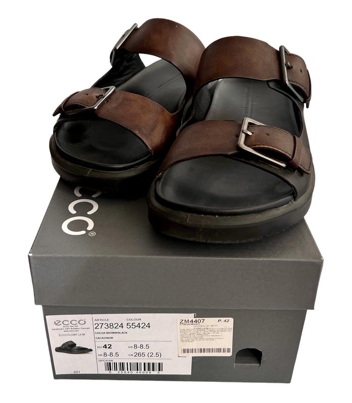 Мужские черно-коричневые шлепанцы ECCO FLOWT LX в городском стиле, размер 42.