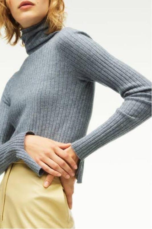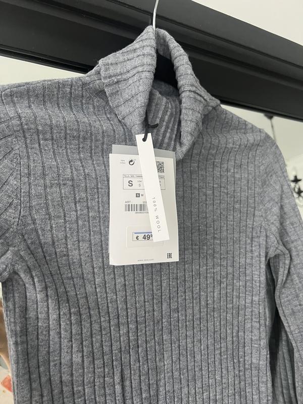 Свитер с высокой горловиной в рубчик в размере S, серый и бежевый