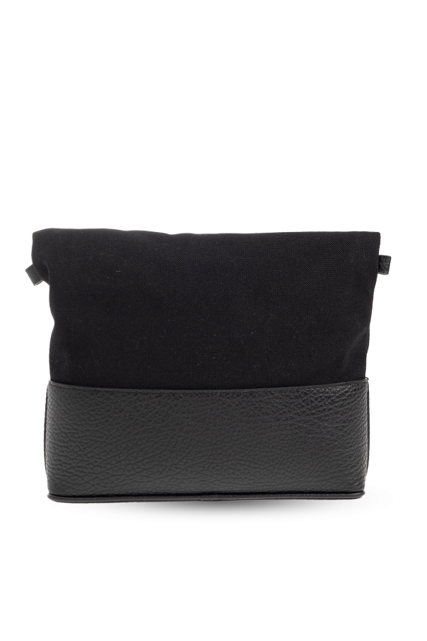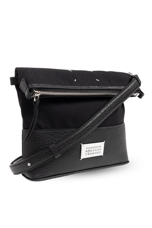 Black shoulder bag from Maison Margiela. Made of fabric and trimmed with leather, this design fastens via a zip and showcases a signature white logo patch, a detachable and adjustable shoulder strap and one internal compartment with a slip pocket.