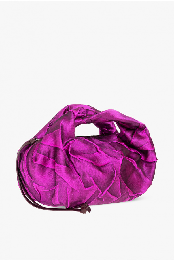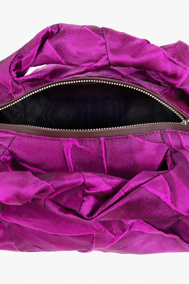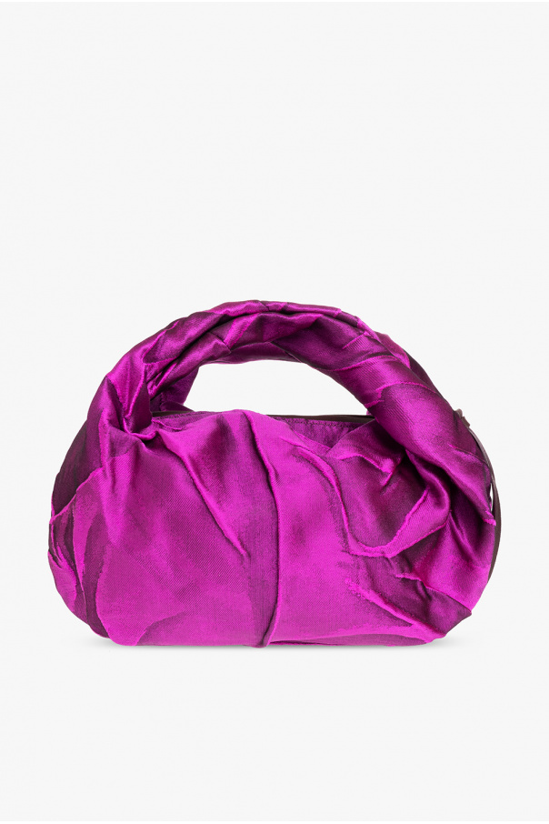 Purple handbag from Dries Van Noten. Crafted from textured fabric, this design features a zip fastening, leather trims, two half-round handles and one internal compartment with a card slot.