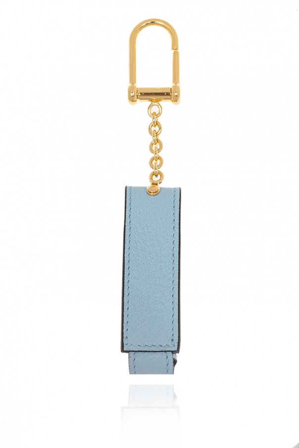 Keychain with light blue lipstick case from Gucci. Crafted from leather, this accessory has gold-tone metal hardware including the label's logo plaque.