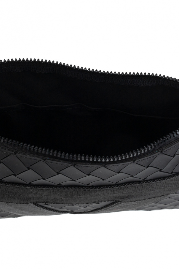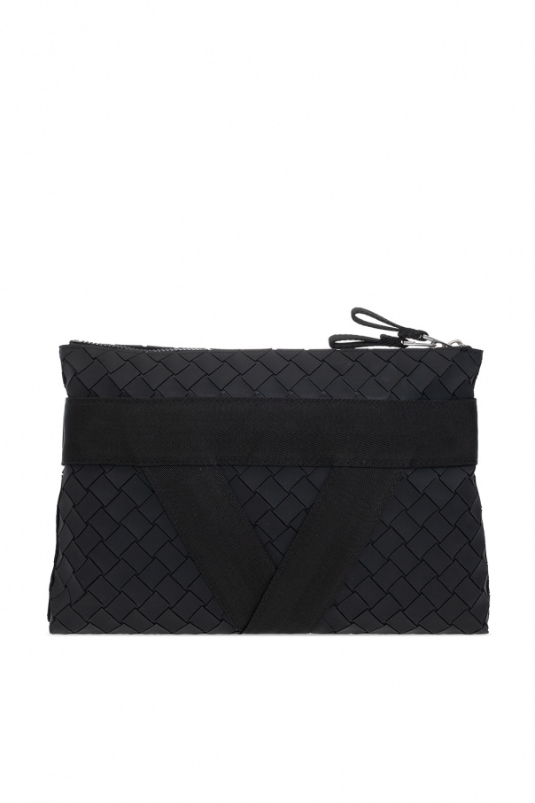 Black briefcase from Bottega Veneta. Embellished with the brand's signature weave, this design features a two-way zip fastening, a zipped pocket on the front, silver-tone metal hardware and one internal compartment.