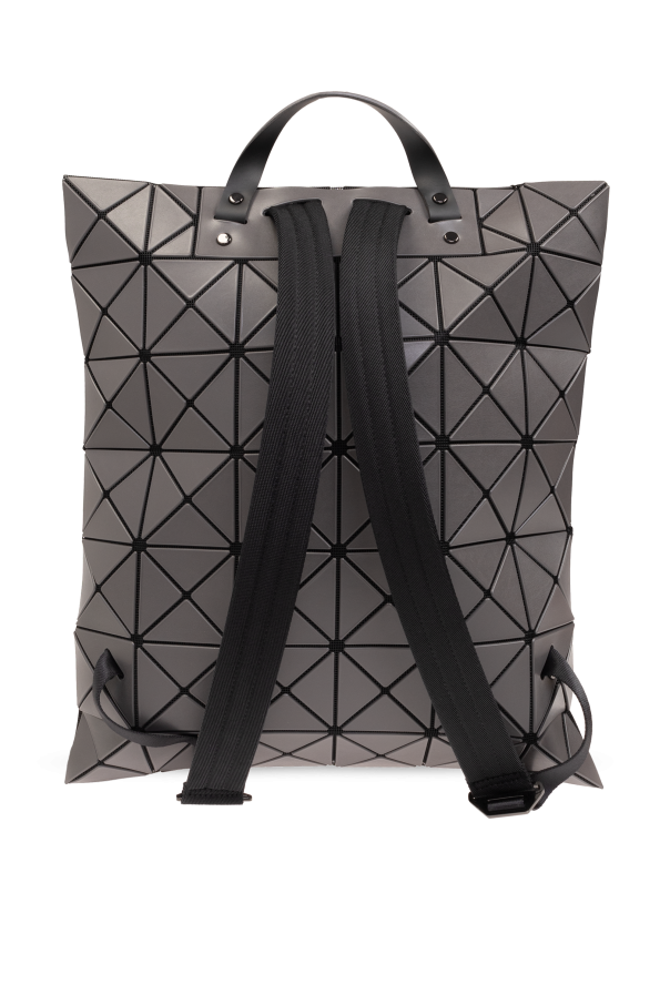 Introducing the epitome of avant-garde elegance: the Issey Miyake Bao Bao Geometric Backpack. Crafted with meticulous attention to detail, this accessory is more than just a statement piece; it\'s a testament to the fusion of functionality and high fashion. The backpack\'s distinctive dark gray hue is complemented by an intricate geometric pattern, formed by rubber applications that create a visually captivating three-dimensional effect resembling small pyramids. Constructed from a blend of high-quality PVC and Polyester, the fabric exhibits a sleek and shiny appearance, suggesting not only the use of innovative materials but also ensuring durability and longevity. The main compartment, secured with a zipper, houses a lining and the designer\'s logo, signifying its belonging to an exclusive collection. For ease of carrying, the backpack is equipped with adjustable straps made from a robust synthetic, possibly nylon, and a handy top handle. The exterior boasts a small, metallic plaque bearing the brand\'s logo, a subtle yet powerful symbol of luxury and exclusivity. This detail, along with the backpack\'s unique design and impeccable craftsmanship, underscores its origins from the higher echelons of fashion accessories. Why Buy This Product? Exemplary craftsmanship and innovative design by Bao Bao Issey Miyake. High-quality materials ensure durability and a luxurious feel. Unique geometric pattern offers a striking visual appeal. Functional features like adjustable straps and ample storage make it a practical yet stylish choice. The inclusion of the designer\'s logo and metallic plaque affirms its exclusivity.