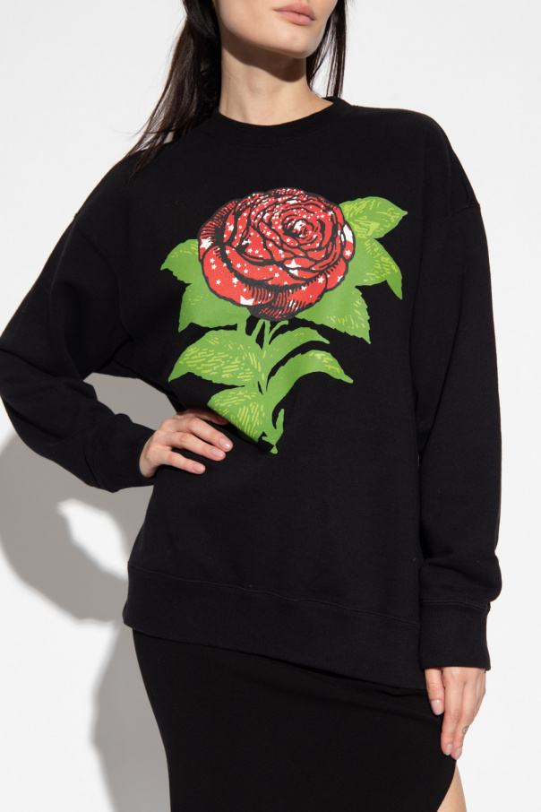 Black crewneck sweatshirt from Undercover. Crafted from cotton, this style features a colourful floral print, long sleeves and ribbed trims on the collar, bottom hem and cuffs.