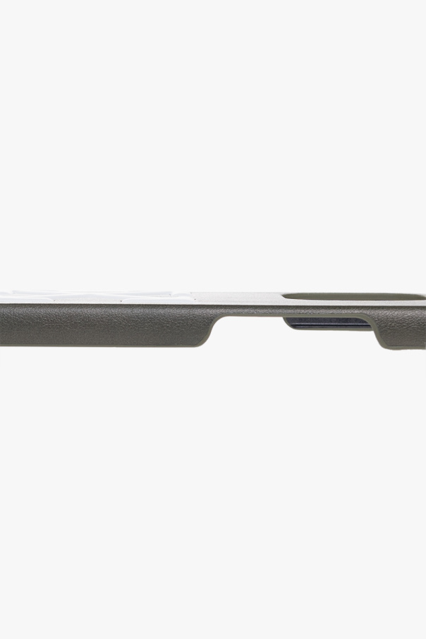 Dark green iPhone 14 Pro case from Off-White. Decorated with a white logo, this design features an adjustable strap with a logo embroidery.
