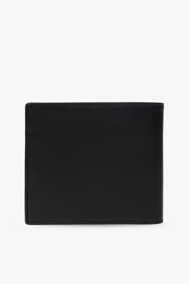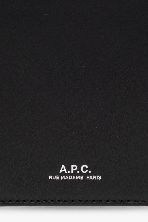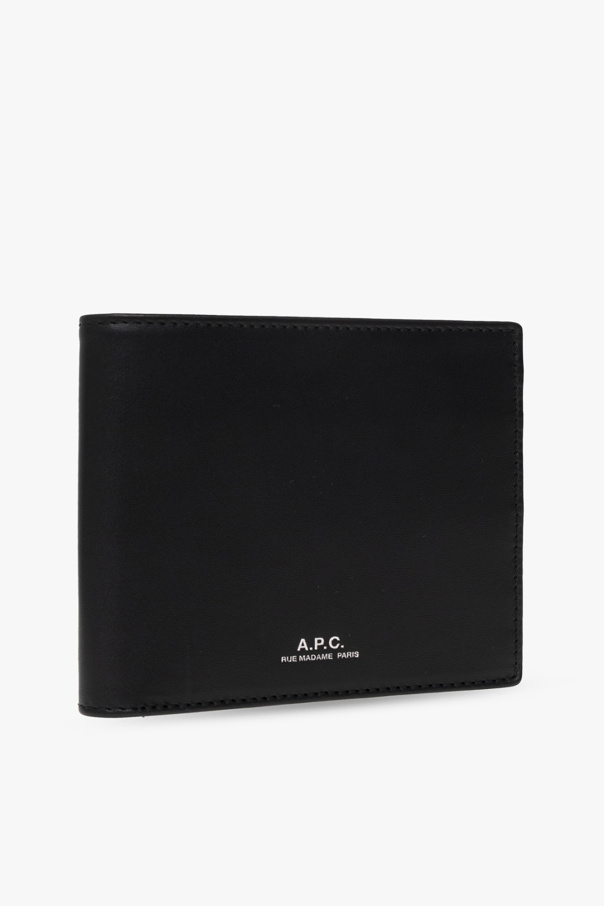 Black ‘Aly’ bifold wallet from A.P.C. Made of textured leather, this item features a silver-tone logo print and has a bill compartment, two slip pockets and six card slots inside.