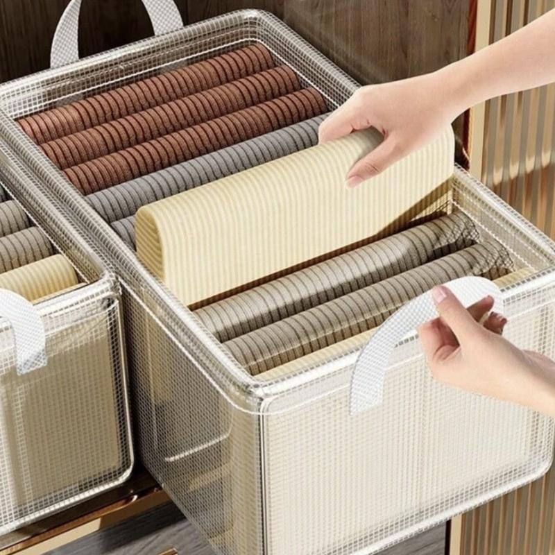 Есть 3 шт. Короб коробка прямоугольный органайзер прозрачная сетка большой 47*28*20 для хранения вещей, постельного белья с ручками (оконцем)