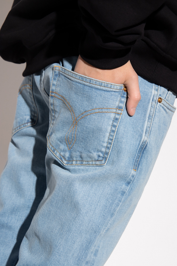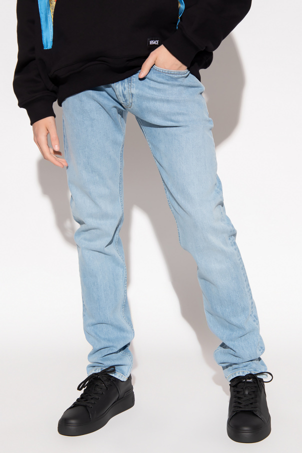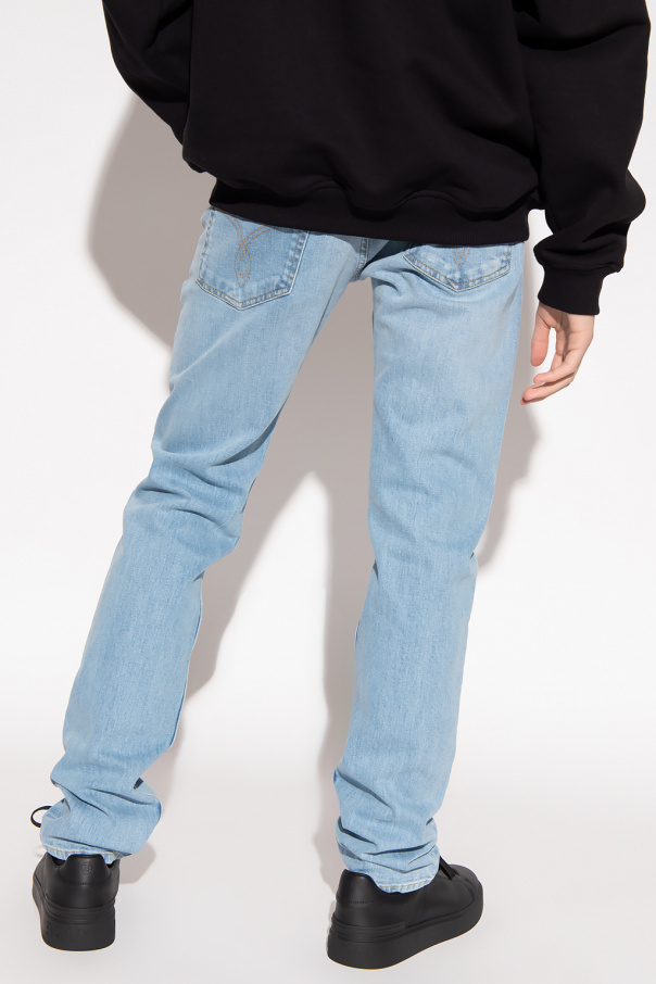 Blue jeans from Versace. Crafted from cotton, this tapered leg design features a zip and button closure and the label’s signature Medusa head patch.