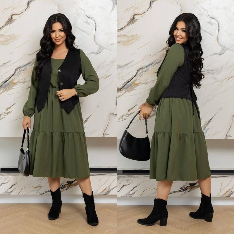 Тренд цього сезону - сукня з пишнею спідницею + жилетка. Жилетка на ґудзиках, ззаду на завʼязці, сукня талія на резинці. Тканина гарної якості, зносостійка, не линяє, не кошлатиться, приємна на дотик.Сукня (окремо)
