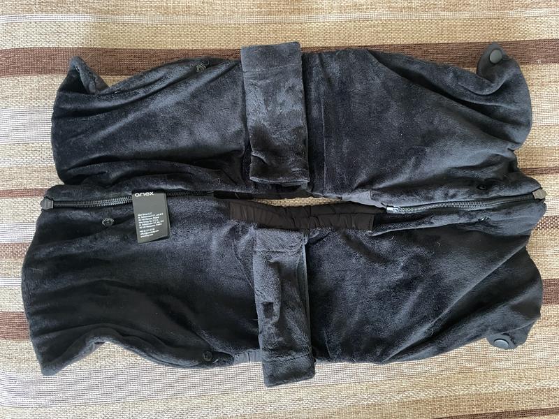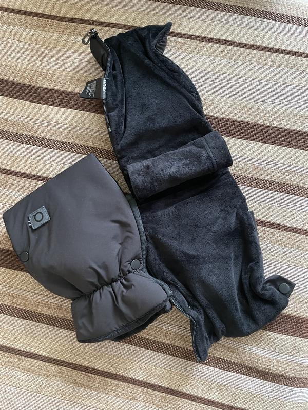 Фирменная муфта-трансформер Anex теплая и мягкая, пристегивается на ручку коляски с помощью кнопок.