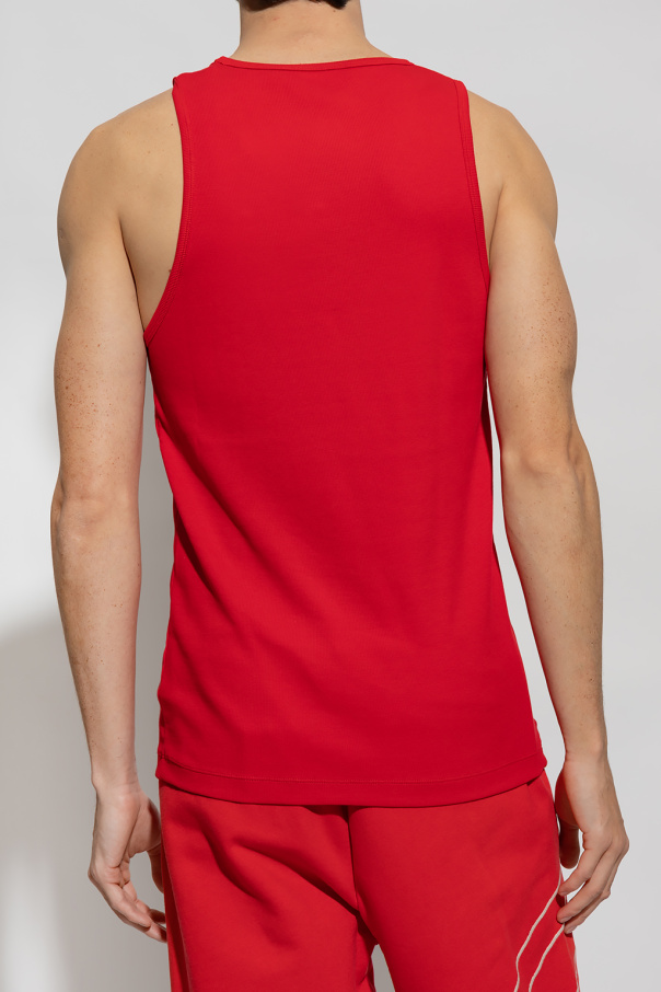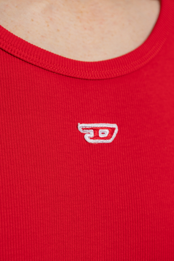 Red ‘T-LIFTY-D’ T-shirt from Diesel. Crafted from cotton, this design features a white and red logo patch and ribbed edges.