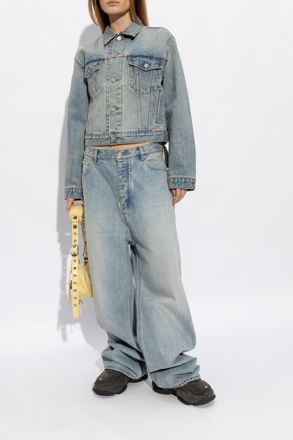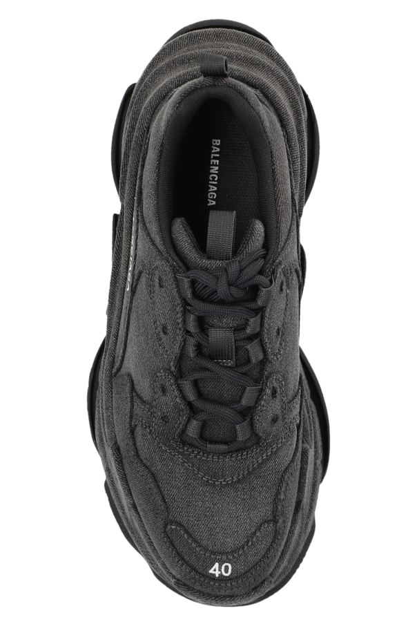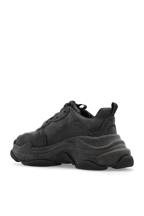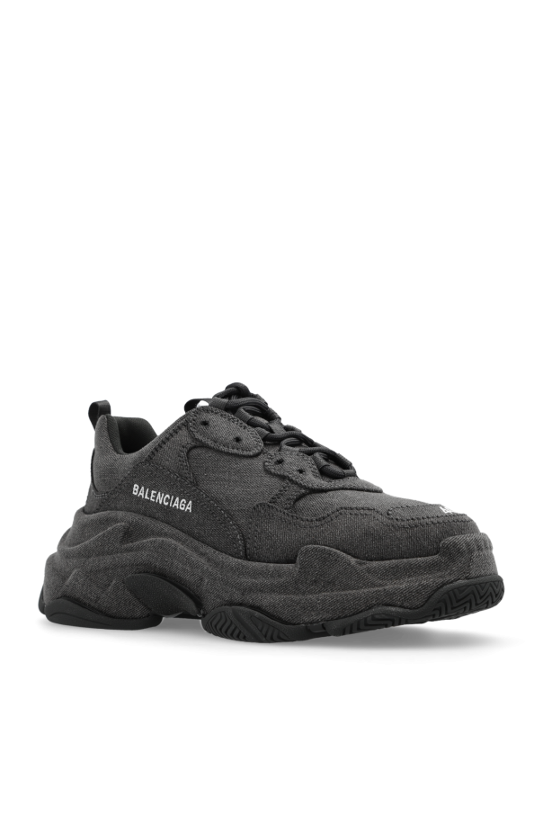 Grey ‘Triple S’ sneakers from Balenciaga. Rendered in denim, this lace-up model sits on a black rubber sole and showcases an embroidered white logo.