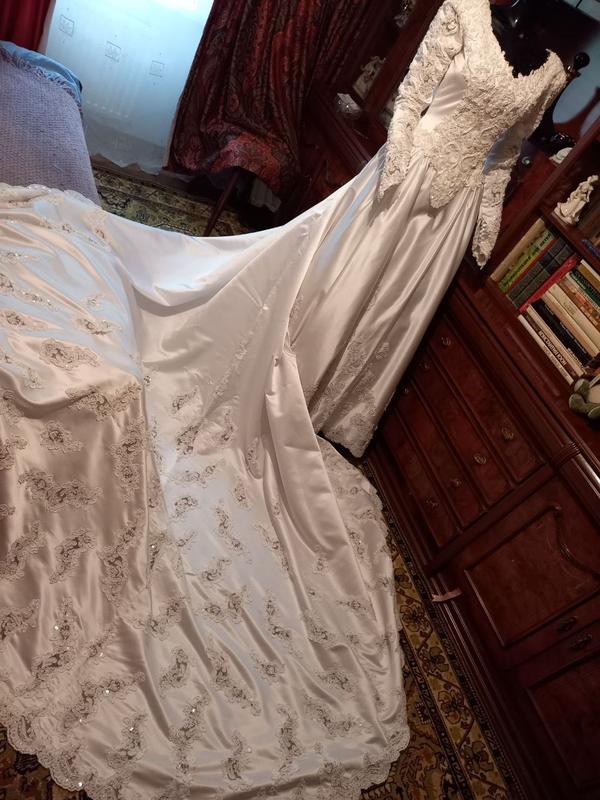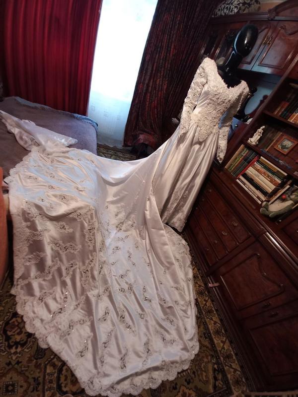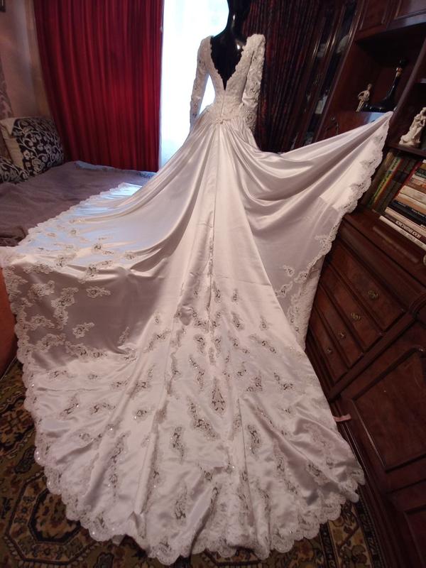 Може бути зі шлейфом чи без нього. Можна на високий зріст, манекен 178 см.сукня після хімчистки, Стан відмінний, плям немає, загальна вага зі шлейфом 4 кг.