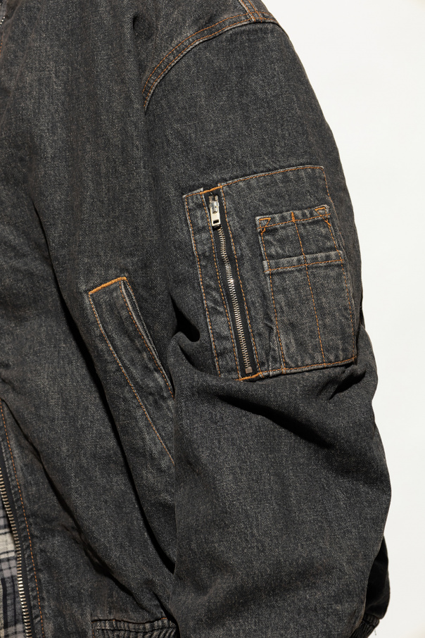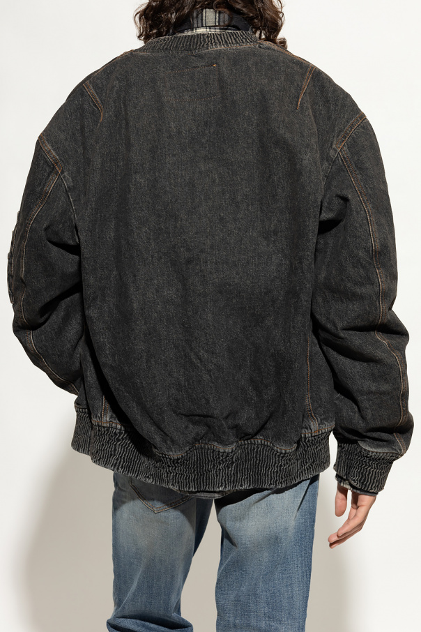 Black ‘D-WELTIK’ padded denim bomber jacket from Diesel. Cut with an oversize silhouette, this style features a front two-way zipper, two snap-fastened pockets, multiple shoulder pockets and ribbed trims on the collar, bottom hem and cuffs.