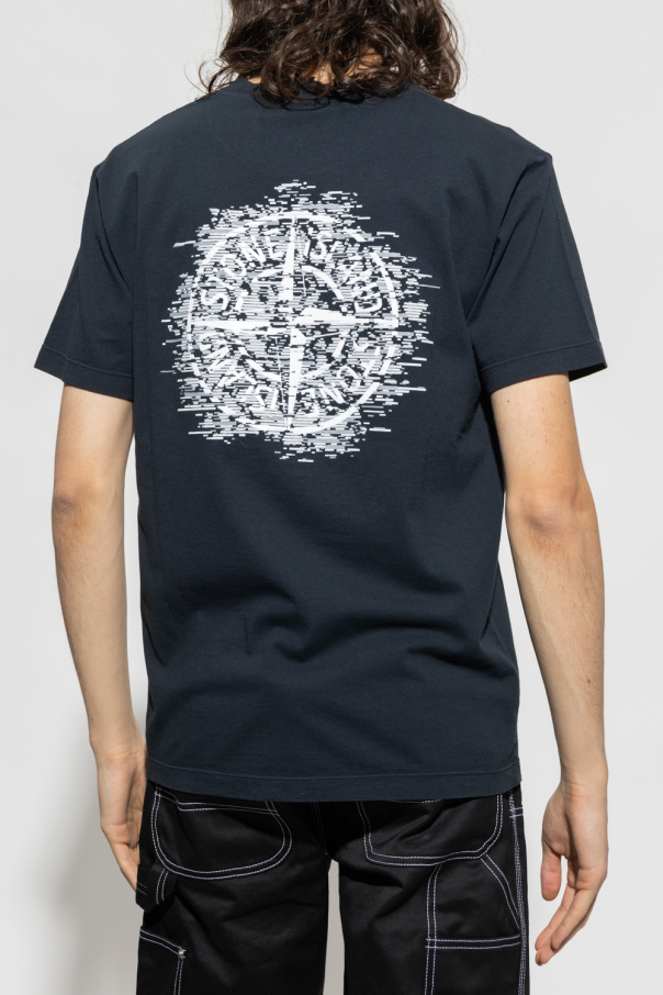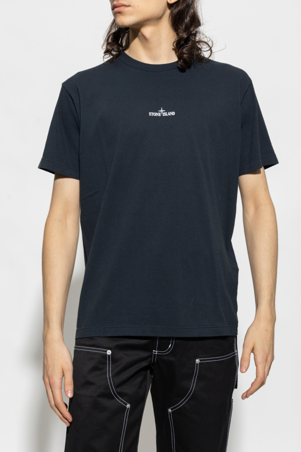 Navy crewneck T-shirt from Stone Island. Crafted from cotton, this garment features a white logo print on the front and back.