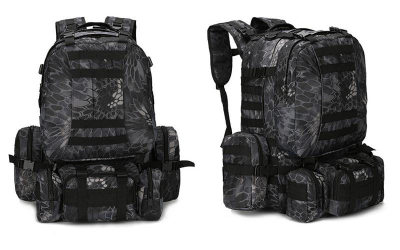 - Система Molle: рюкзак можно использовать в сочетании с другим снаряжением: сумки для бутылок с водой, раций, для оказания первой помощи, фонарики и т. д.